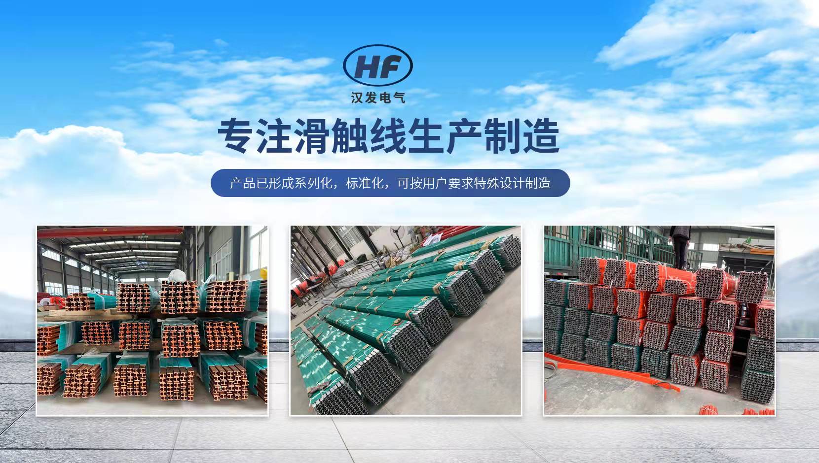HFD型、HFDT型、HFDJ型單極組合式滑觸線 單極組合式滑觸線是由單根導電軌根據工作場合需要,利用支架,組裝臂,懸吊夾,連接盒,集電器,拔叉等部件組合而成的滑觸線?;|線單支長度定尺為6米?;|線用連接盒連接,每連接盒處都可以作為電源線的接入口?! FD型鋁合金單極滑觸線,導電軌為LD31鋁型材,導電槽中壓入IG18Ni9不銹鋼抗磨損,護套(外殼)由PVC工程塑料經熱擠壓加工而成?! FDT型銅單極滑觸線,導電軌為T2導電銅,護套(外殼)用PVC工程塑料經熱擠壓加工而成 HFDJ型耐高溫單極滑觸線,是在HFD型滑觸線的護套(外殼)外而再加套鋁合金型材的護套,配置相應的耐高溫連接盒,懸吊夾。主要用于高溫,空氣腐蝕性較大的工作場合?! ≈Ъ懿馁|有角鋼、扁鋼二種,可根據不同型號規格的滑觸線選用。 HFD型鋁合金單極滑觸線使用范圍廣,吊車運速度快,制造成本低,集電器安裝形式是外壓式,更換維護方便。滑觸線型號及其技術參數 當滑觸線長度大于200米,切溫差較大時,就配置膨脹段,防止由于熱膨脹引起的滑觸線變形?! ⊥粭l滑觸線上有兩臺以上的設備運行,為在整條滑觸線不停電情況下檢修設備,可在滑觸線上適當位置加裝檢修段。